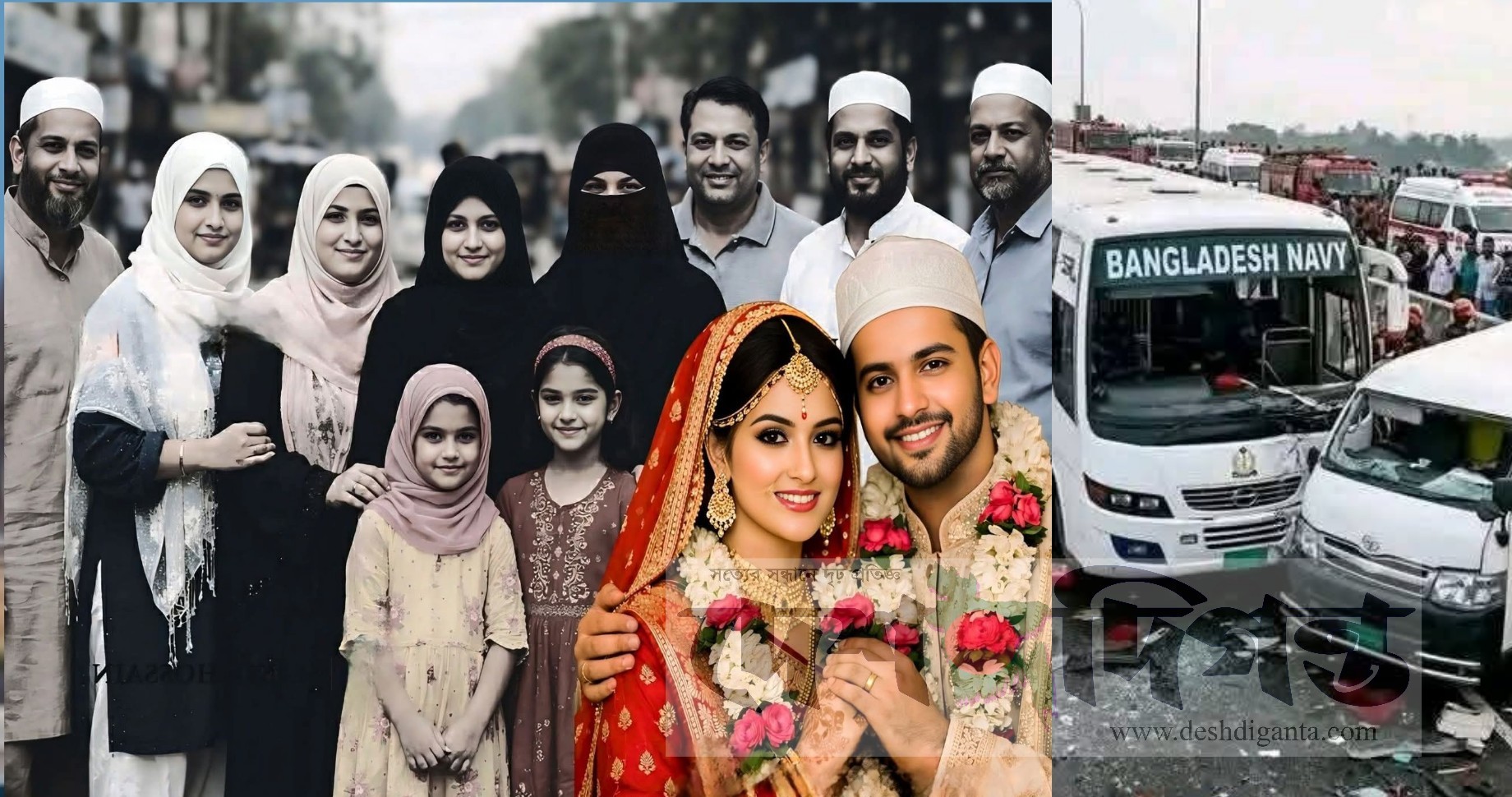 যে গাড়িতে ছিল বিয়ের আনন্দ আর নতুন জীবনের স্বপ্ন, সেই গাড়িই মুহূর্তে হয়ে গেল এক ম'র্মান্তিক বিদায়ের গাড়ি—একসাথে নিভে গেল একটি পরিবারের অসংখ্য স্বপ্ন।