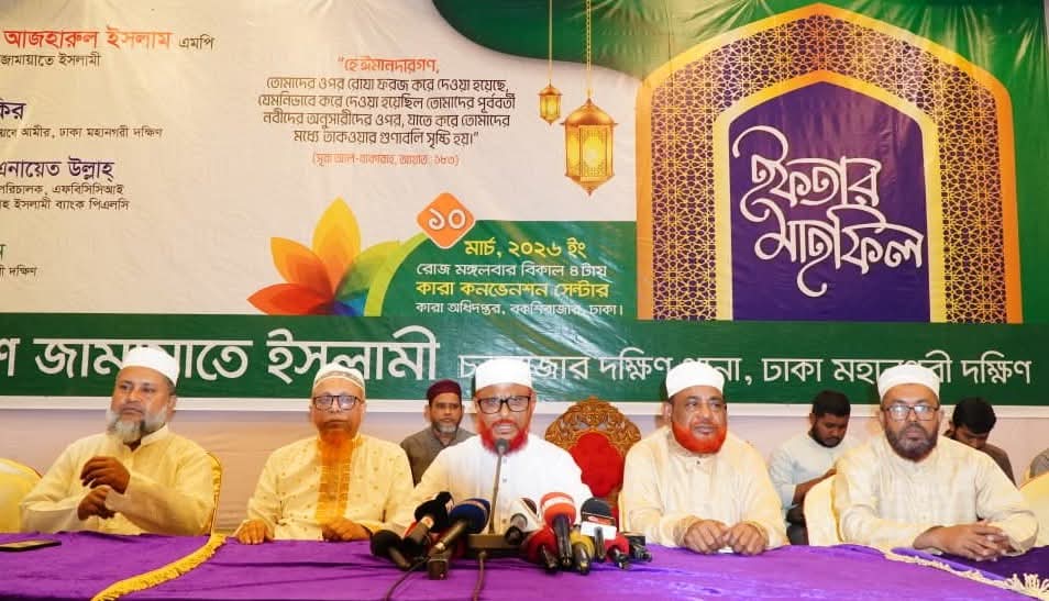 মঙ্গলবার (১০ মার্চ) বাংলাদেশ জামায়াতে ইসলামী চকবাজার দক্ষিণ থানার উদ্যোগে রাজধানীর বকশিবাজারস্থ কারা কনভেনশন সেন্টারে আয়োজিত ইফতার মাহফিলে প্রধান অতিথির বক্তব্যে তিনি এসব কথা বলেন।