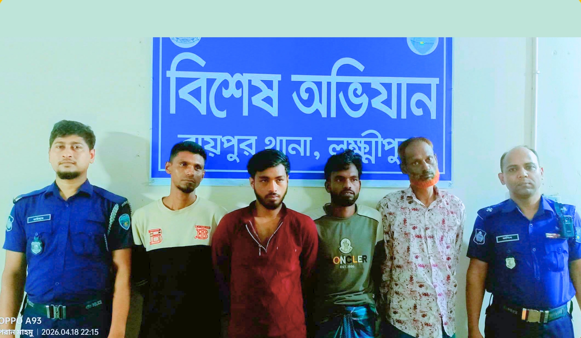গ্রেফতারকৃত আসামীরা হলো ১। মোঃ আক্তার হোসেন প্রকাশ চোরা আক্তার (৪৭), পিতা-শাহ আলম গাজী, মাতা-শামছুন নাহার, সাং-চর আবাবিল (গাজী বাড়ি), ০৪ নং ওয়ার্ড, ০১ নং উত্তর চর আবাবিল ইউপি, থানা-রায়পুর, জেলা-লক্ষ্মীপুর