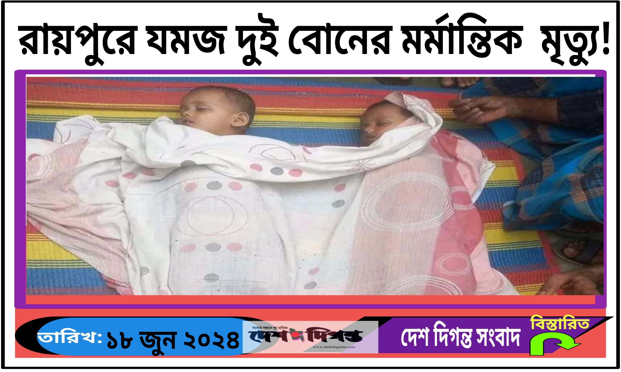 নিহত দুই শিশুরা হচ্ছে, দেবীপুর এলাকার আনোয়ার হোসেন পুটন এর মেয়ে ৪ বছরের হিরা আক্তার ও মুক্তা আক্তার। তারা দুইজনই যমজ বোন। এই মর্মান্তিক মৃত্যুতে নিহত শিশুর পরিবার ও এলাকায় চলছে শোকের মাতম। মঙ্গলবার (১৮ জুন) দুপুরে ঘটনাটি ঘটেছে ১০নং ইউনিয়ন ০২ নং ওয়ার্ডস্থ বাগানী বাড়ীতে।