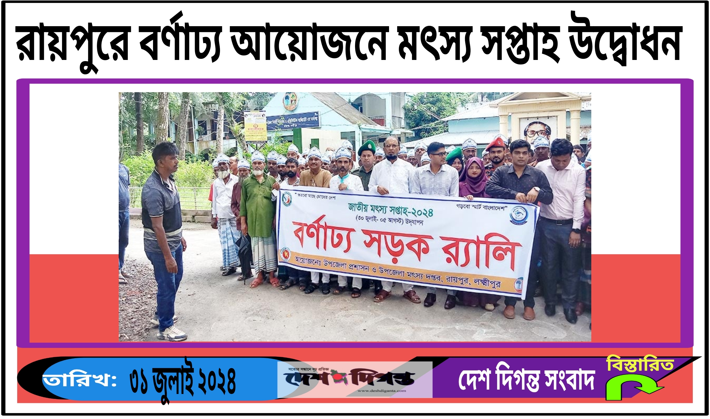 ভরবো মাছে মোদের দেশ গড়বো স্মার্ট বাংলাদেশ এ স্লোগান সামনে রেখে উপজেলা নির্বাহী অফিসার মো. ইমরান খাঁন এর সভাপতিত্বে ও সিনিয়র মৎস্য কর্মকর্তা মো. এমদাদুল হক এর সঞ্চালনায় আলোচনা সভা অনুষ্ঠিত হয়। এসময় উপস্থিত ছিলেন রায়পুর থানা অফিসার ইনচার্জ (ওসি) মো. মাহবুবুর রহমান, উপজেলা মহিলা ভাইস চেয়ারম্যান হাসিনা আক্তার, প্রকৌশলী সুমন মুন্সী, বি আর ডিপি কমকর্তা আব্দুর সাত্তার, ইউনিয়ন পরিষদের চেয়ারম্যান ও সদস্য বৃন্দ। অনুষ্ঠানে মৎস্য খাতে বিশেষ অবদান রাখায় উপজেলার তিনজন মৎস্য খামারিকে পুরস্কার প্রদান ও নতুন করে নিবন্ধিত জেলেদের মধ্যে স্মার্ট কার্ড বিতরণ করা হয়।