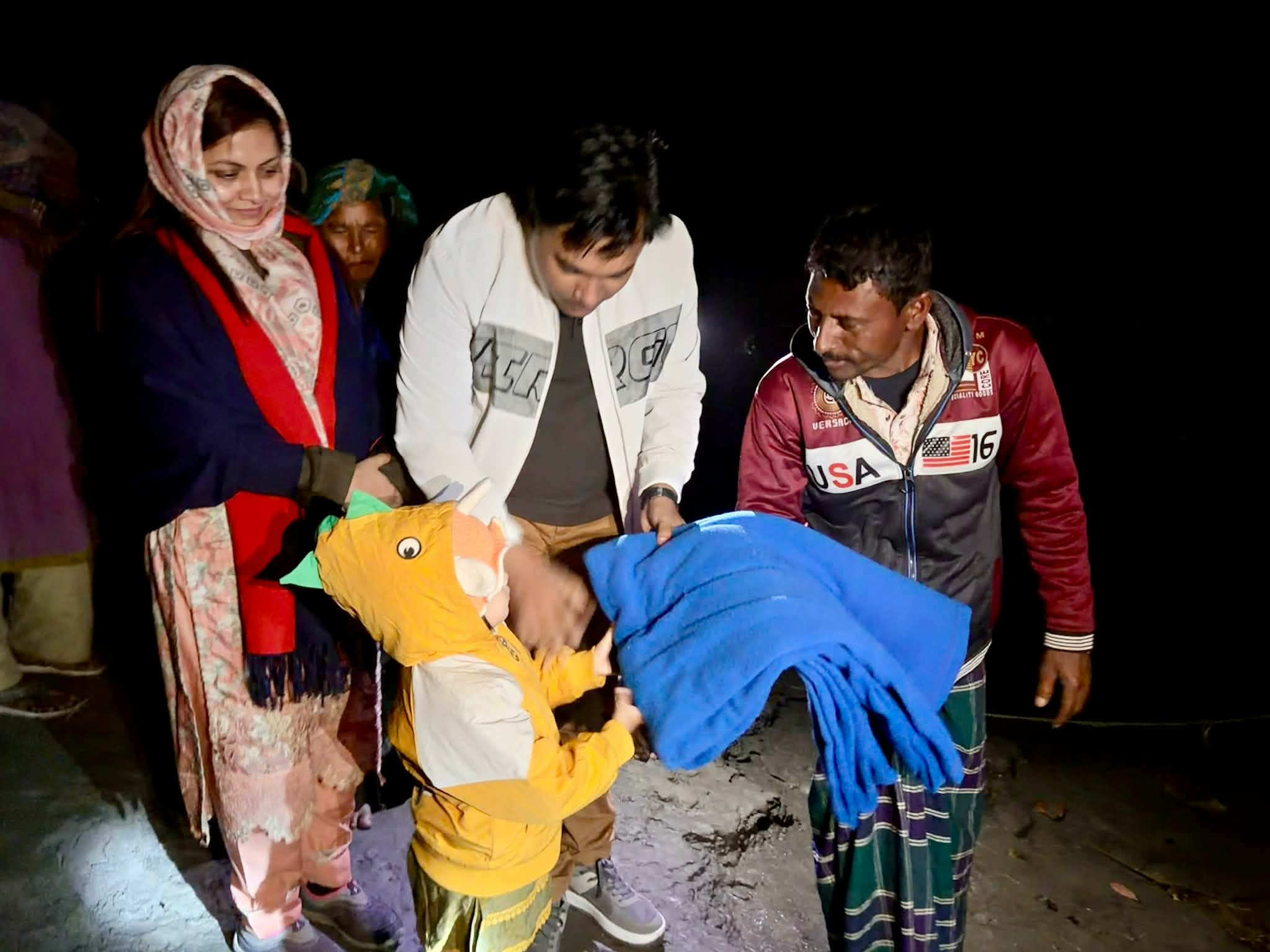 শীতের প্রকোপ বাড়ার সঙ্গে সঙ্গে এসব ভাসমান মানুষের কষ্ট আরও তীব্র আকার ধারণ করে। বিষয়টি বিবেচনায় নিয়ে গভীর রাতেই সরাসরি ঘটনাস্থলে ছুটে যান উপজেলা নির্বাহী অফিসার মেহেদী হাসান কাউছার। নৌকায় করে একে একে ভাসমান পরিবারগুলোর কাছে পৌঁছে তিনি নিজ হাতে কম্বল তুলে দেন। এ সময় তার সঙ্গে ছিলেন তার সহধর্মিণী মিস সাথী আক্তার এবং তাদের সন্তানও। পরিবারসহ এমন মানবিক উদ্যোগ স্থানীয়দের মাঝে আলাদা মাত্রার অনুপ্রেরণা সৃষ্টি করে।