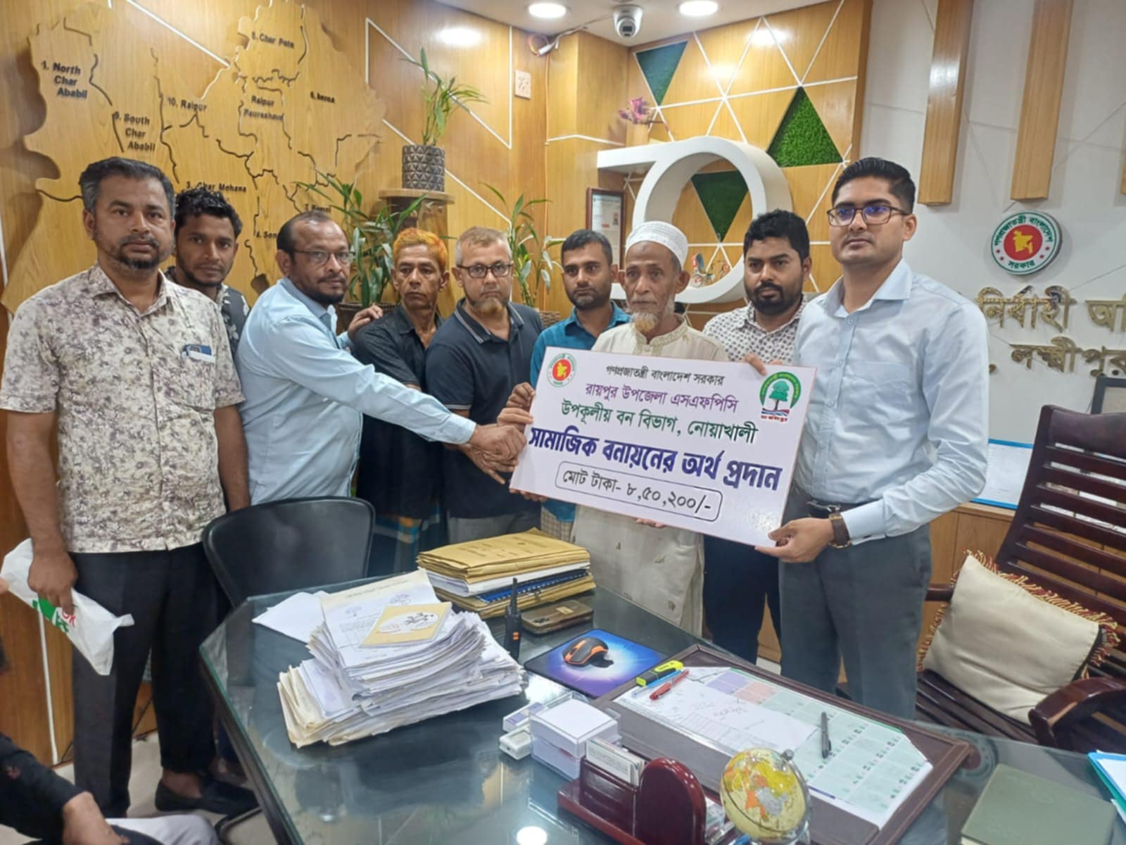 লক্ষ্মীপুরের রায়পুরে সামাজিক বনায়নের আওতায় গাছ বিক্রির লভ্যাংশ হিসেবে ৮ লাখ ৫০ হাজার টাকা পেয়েছেন উপকারভোগীরা। এতে হাসি ফুটেছে উপকার ভোগীদের মুখে।
