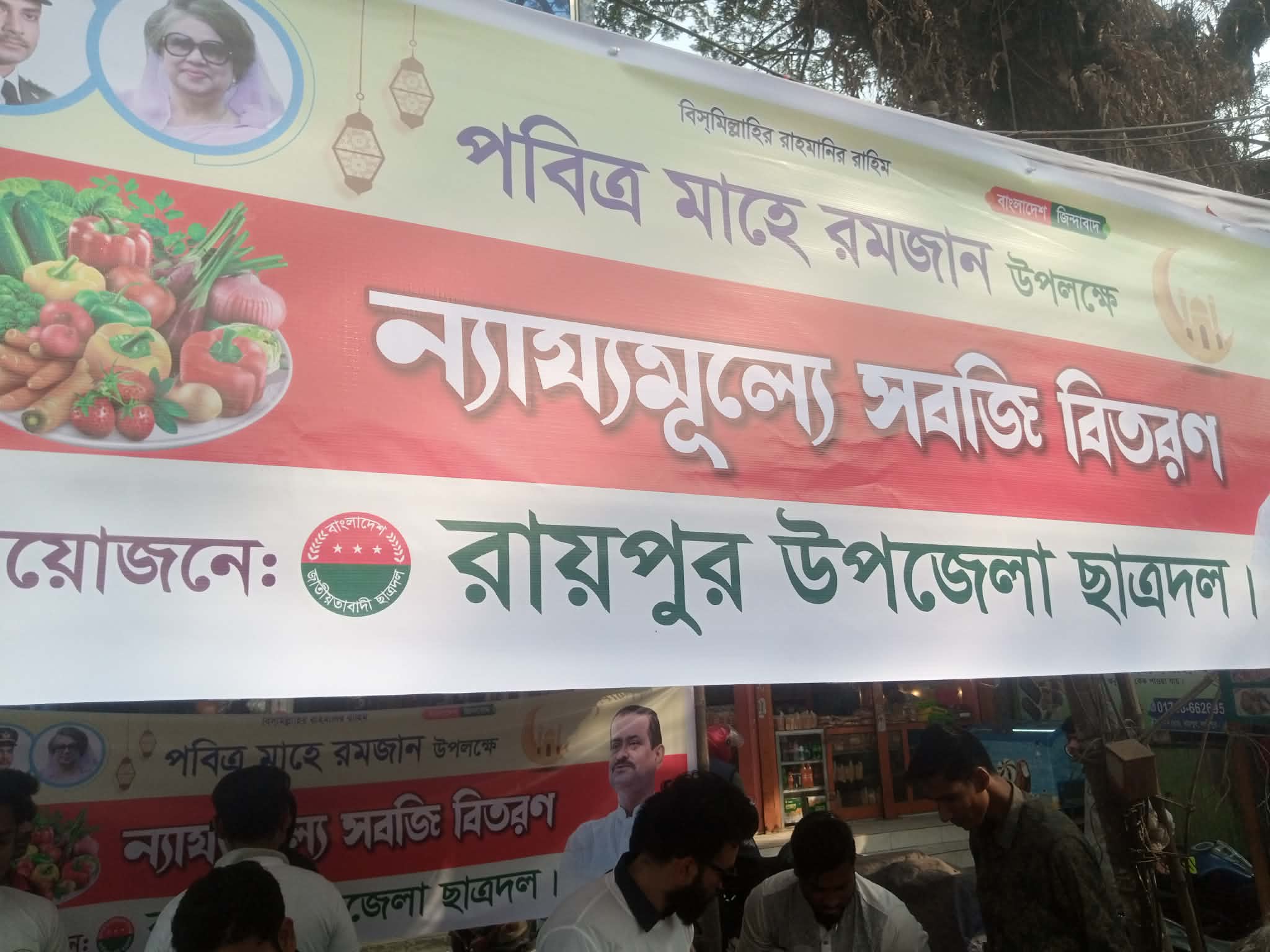 রায়পুর উপজেলা ছাত্রদলের উদ্যোগে ন্যায্যমূল্যে সবজির বাজার