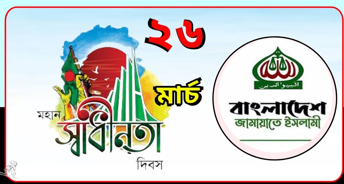আগামী ২৬ মার্চ মহান স্বাধীনতা ও জাতীয় দিবস উপলক্ষে বাংলাদেশ জামায়াতে ইসলামীর দুই দিনব্যাপী কর্মসূচি ঘোষণা