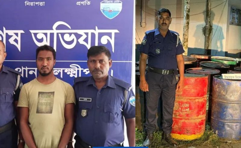 লক্ষ্মীপুর রামগতিতে বিশেষ অভিযানে২৪ ড্রাম অবৈধ জালানি তেল জব্দ! গ্রেফতর ১ জন