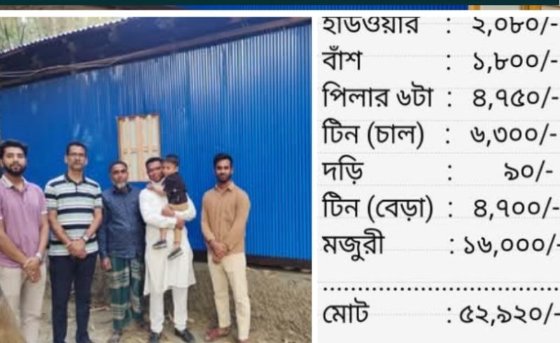চরপাতা ক্রীড়া সংঘ পূলণ করলো স্বামী হারা জাহানারার নতুন ঘরের স্বপ্ন