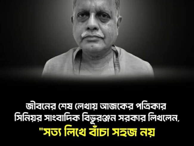 সত্য লিখে বাঁচা সহজ নয়”— শেষ লেখায় বিভুরঞ্জন সরকার